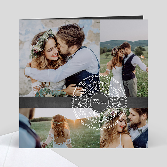 Les deux photos sont choisies. Notre équipe de graphistes vérifie la qualité des photos de votre carte remerciements mariage et l'améliore, si besoin, pour une impression optimale. Carte de remerciements mariage mariage vintage. Une carte de remerciement mariage vous permet d'envoyer une délicate attention à vos proches et ainsi les remercier d'avoir partagé avec vous ce jour inoubliable.