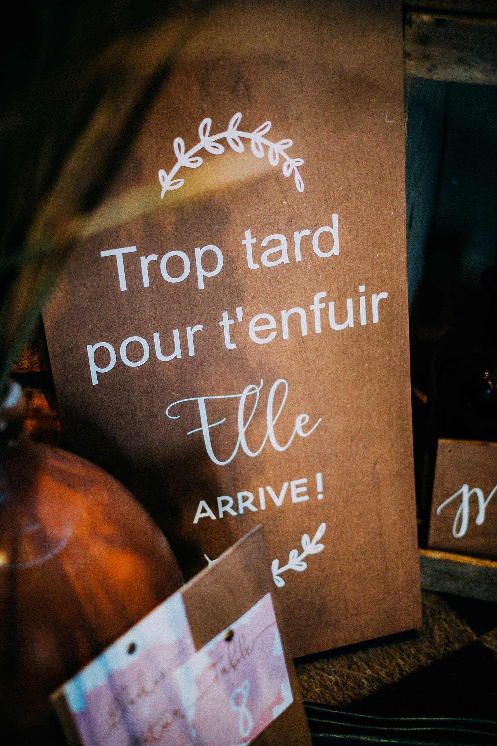 35+ Panneau Mariage Trop Tard Pour T'enfuir. Par défaut il sera seulement avec le texte trop tard pour t'enfuir, elle arrive.. Pourquoi ne pas leur donner un rôle de choix à ton mariage en leur confiant :