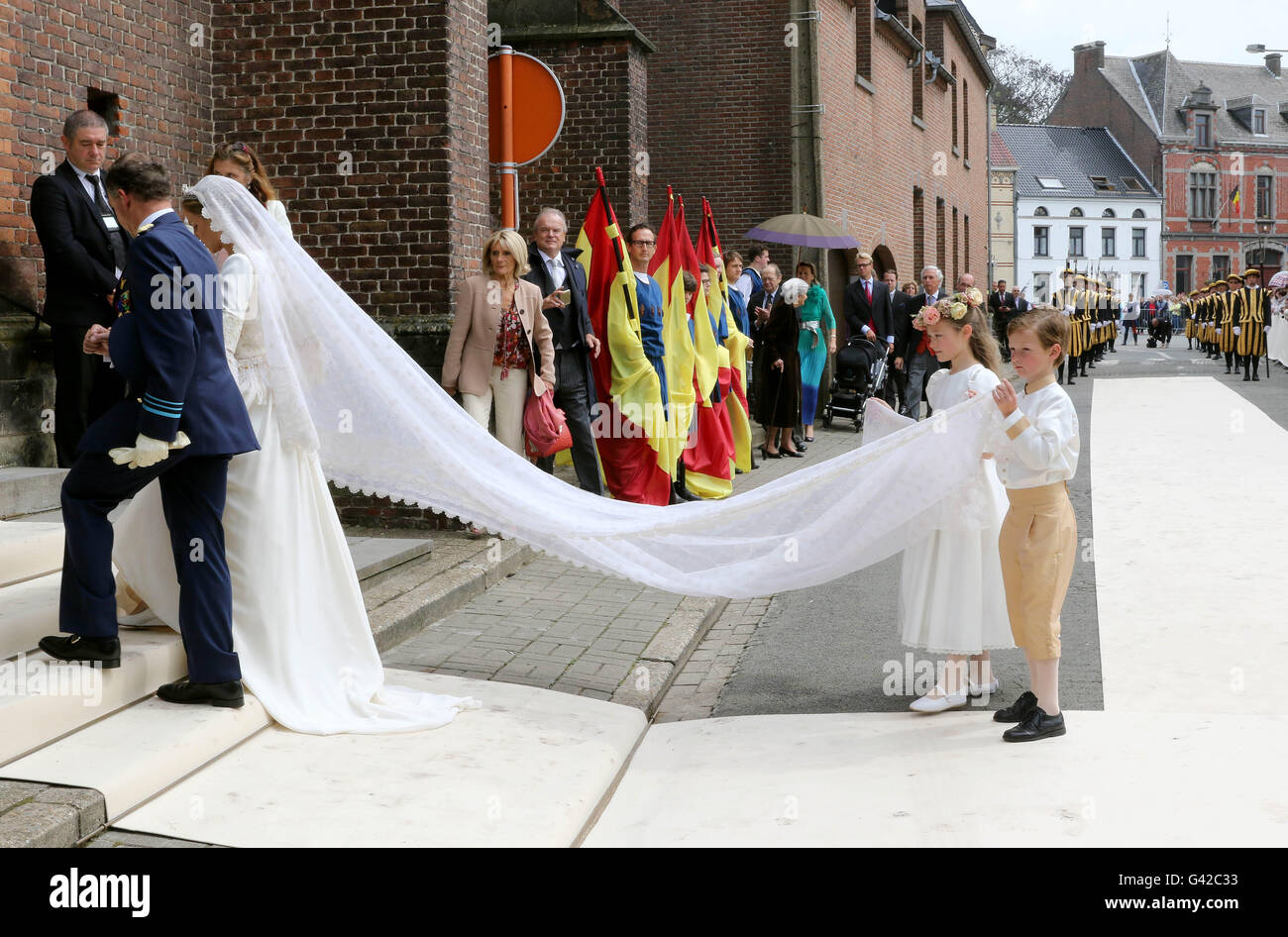 Beloeil Belgique 18 Juin 2016 Princesse Alix De Ligne Et Son Pere Michel 14eme Prince De Ligne Mariage Arrivee De Guillaume De Dampierre Et De La Princesse Alix De Ligne Au Chateau from c8.alamy.com