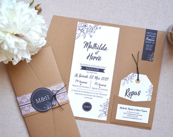 Ces invitations très florales vous surprendront par l'alliance d'un esprit contemporain avec un kraft veilli aux notes vintage.