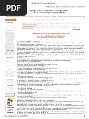 Si ta plus d question dans ta tète voila. Le mariage marocain, célèbre pour ces célébrations très joyeuses, est lié à de fortes coutumes ancestrales. En effet, les démarches administratives sont un peu plus compliquées lorsqu'on veut s'unir à l'étranger. Transcription mariage franco marocain au maroc nouvelle articles de mehdiblog sur la transcription d'un mariage (cliquer sur le lien ci dessous) mariage franco marocain, informations formalités mariage mixte franco marocain,question ccm,visa, test de français, liste prénom musulman, histoire.