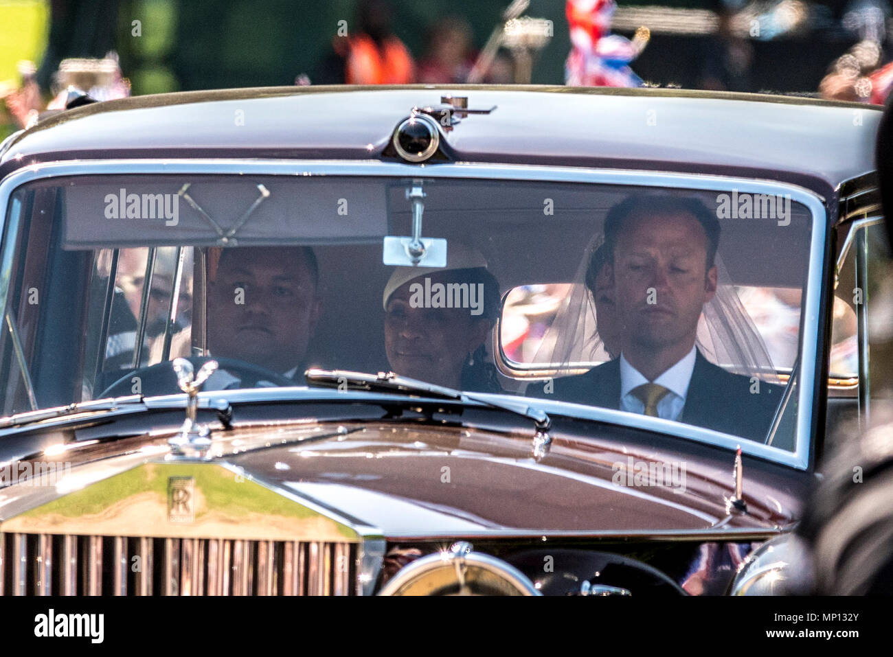 La plaque d'immatriculation de la voiture du prince harry et meghan markle. Le mariage du prince henry de galles, alias « harry », 33 ans, sixième dans l'ordre de succession de la monarchie, avec meghan markle, 36 ans, roturière, actrice, divorcée et américaine, samedi 19 mai au château de windsor, devait symboliser la nouvelle ouverture d'esprit de la famille royale britannique. Les membres de la famille royale commencent à arriver à pied et en voiture.