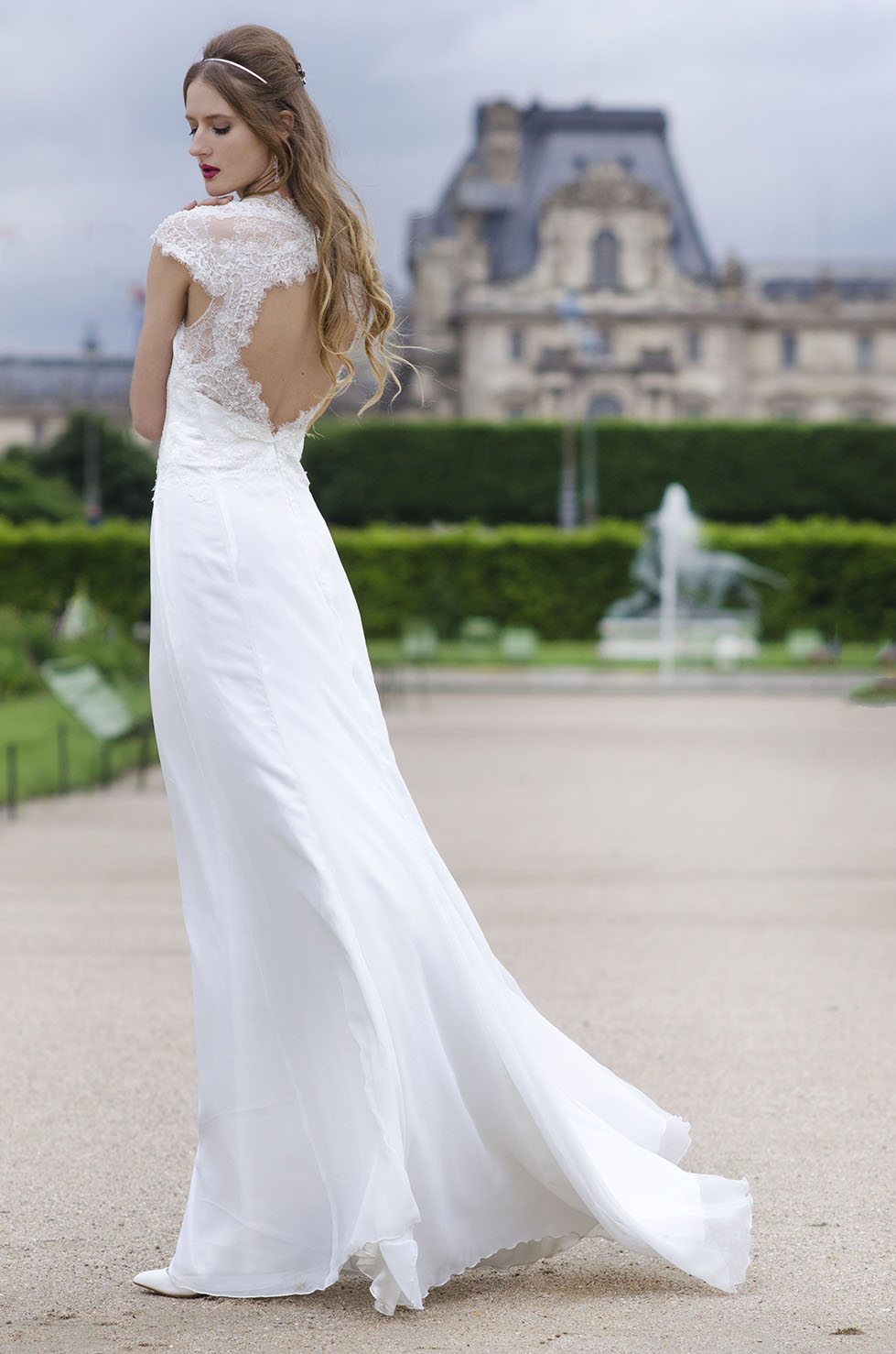 Robe de mariée bohème dentelle dos nu. Elle devrait aussi penser au fait que ces invités la verront de dos pendant toute la cérémonie, la mariée aura ainsi quelque chose de spécial sur quoi les personnes présentes et le photographe pourront se focaliser. Laure de sagazan, robe achard.