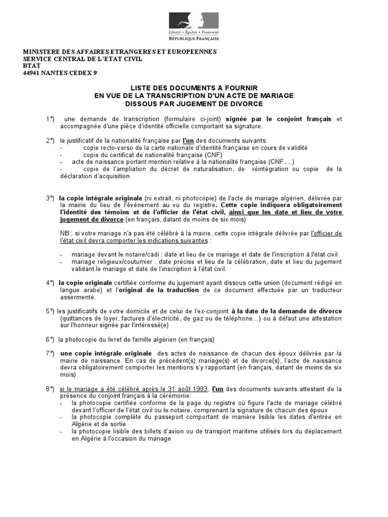 Noms de famille, prénoms et mention du sexe des époux, date et lieu du mariage, numéro d'inscription, numéro de document (depuis le 29 mars 2005), date de délivrance et, s'il y a lieu. Dans le cadre de démarches administratives que vous entreprenez, il pourra vous être demandé une copie intégrale de votre acte de mariage, ou un extrait d'acte de mariage, avec ou. (si l'acte est rédigé en une langue autre que l'arabe les conjoints doivent déposer une copie de l'acte de mariage civil, aux services consulaires marocains dont relève le lieu d'établissement de l'acte de.