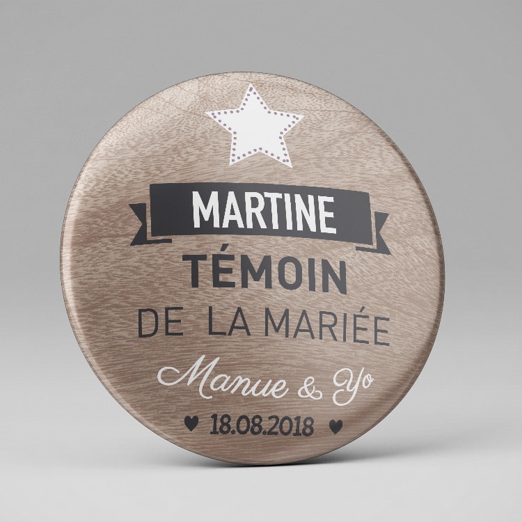 Des badges à personnaliser (portes clés, magnet frigo, miroir, décapsuleur) et des idées originales pour faire des demandes ou annonces (mariage, pacs, témoin etc.) avec les cartes à gratter. Créez vos badges de mariage en toute simplicité. Grâce a ce joli petit accessoire, vos témoins seront les plus heureux ! Une bonne idée comment poser la question à votre demoiselle d'honneur.